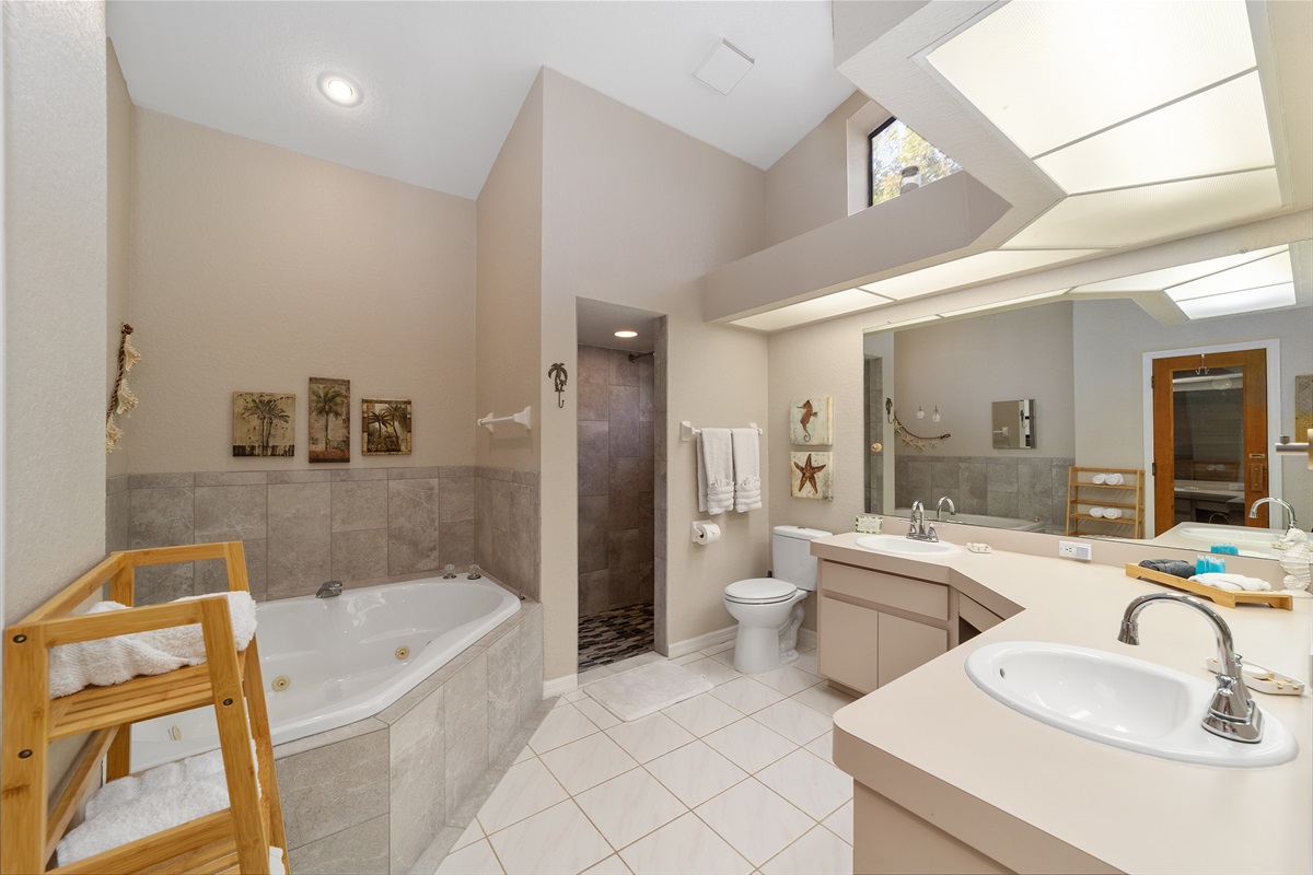 The other bedrooms are at the other end of the house. They are large and share the other full bathroom that is larger than many master baths! And remember, there is a third bath off the lanai. Both are easily accessible to the pool and the house.